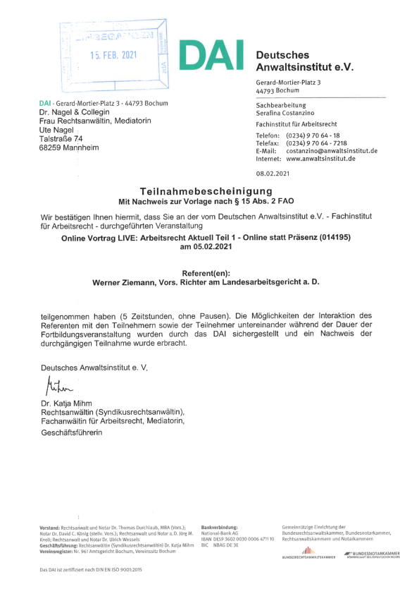 - Arbeitsrecht Teil 1 (Februar / Heusenstamm)